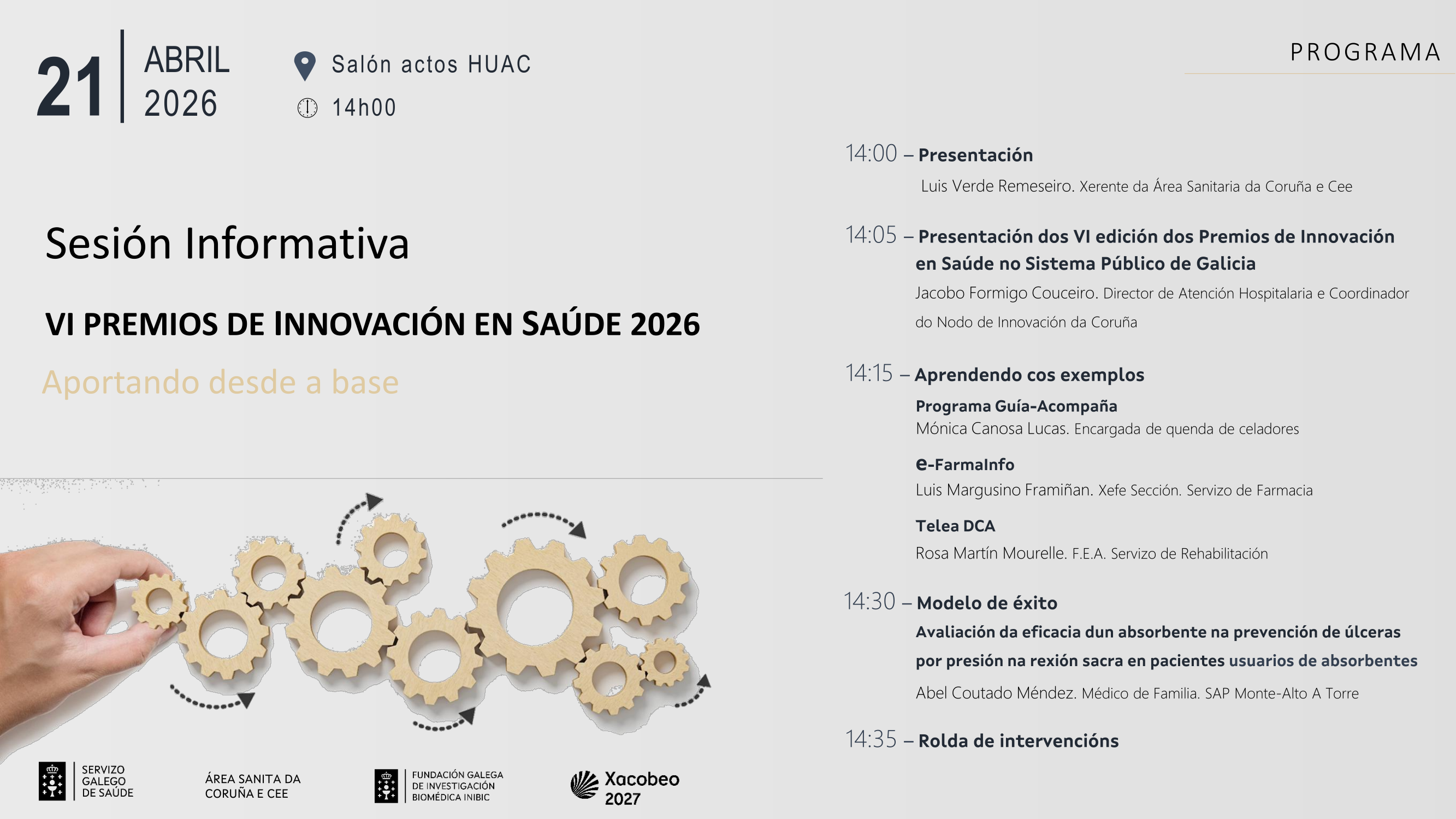21abr2:00 pm2:35 pmVI PREMIOS DE INNOVACIÓN EN SAUDE 2026